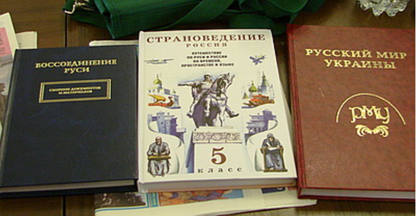 «Українська академія русистики» ще у 2008 році видала 25 тисяч підручників для школярів 5-го класу «Страноведение. Россия» та підручник для перекваліфікації вчителів історії «Воссоединение Руси».